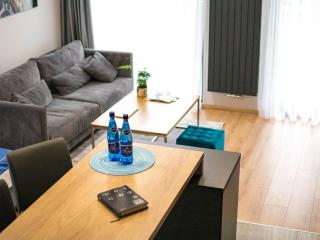 Offering a terrace and a shared lounge, Cobalt Apartments in Mikołajki is close to Tropikana Aqua Park and Sailors' Village. This apartment provides free private parking, full-day security, and free Wifi. The property offers free use of bicycles and features a garden and picnic area.