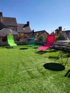 Maison centre bourg Port-Bail offers accommodations in Portbail, a 12-minute walk from Lindbergh Beach and 29 miles from La Cite de la Mer. Featuring city and inner courtyard views, this vacation home also offers free Wifi. Outdoor seating is also available at the vacation home.